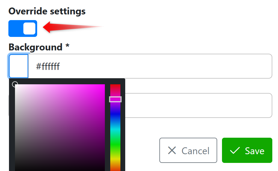 - Use the switch to activate the overwriting of the global colours for the QR code.
