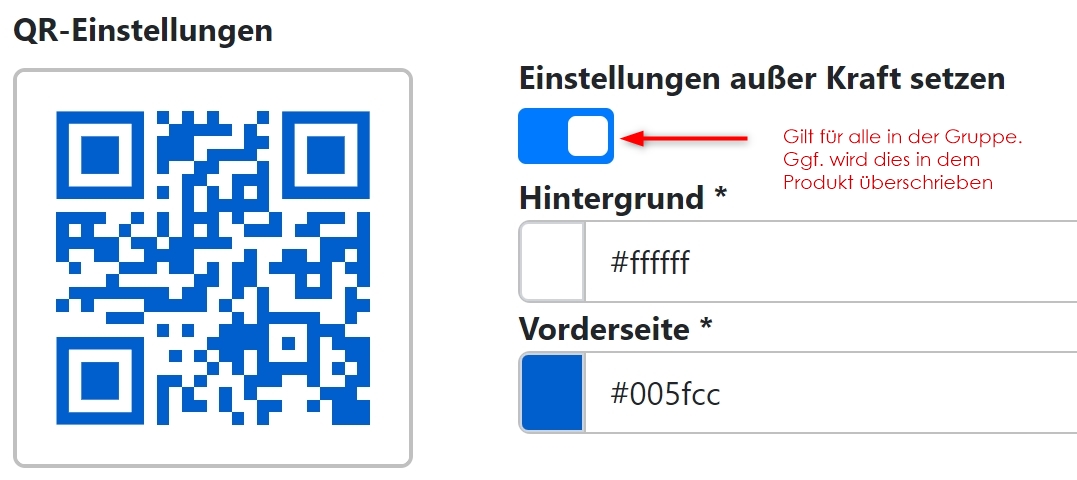 - Pomocou prepínača aktivujete prepísanie globálnych farieb pre QR kód.